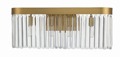 | Art deco design is exemplified in the Guyton collection. The collection features a row of smooth glass prisms hanging from a steel frame. Both the Black Forged and Modern Gold finishes, add all the sparkle and glamour you need in a fixture. |