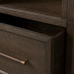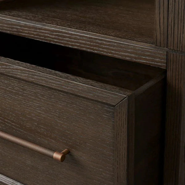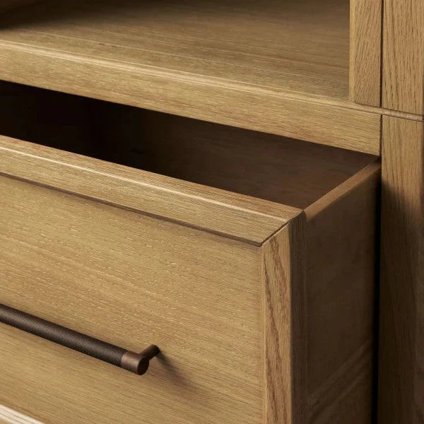 Where soft curves blend seamlessly with the natural beauty of oak, the artisan-crafted Hattie Collection stands ready. With spacious shelves, it offers ample room to showcase your cherished treasures and daily essentials.