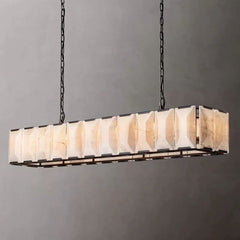 The collection showcases natural beauty with a minimalist sensibility.Translucent alabaster is cut in sheer and faceted slabs, each held in place by a slender mount in our dramatic collection. Warm light shines through the stone, accentuating the play of crystal formations within.