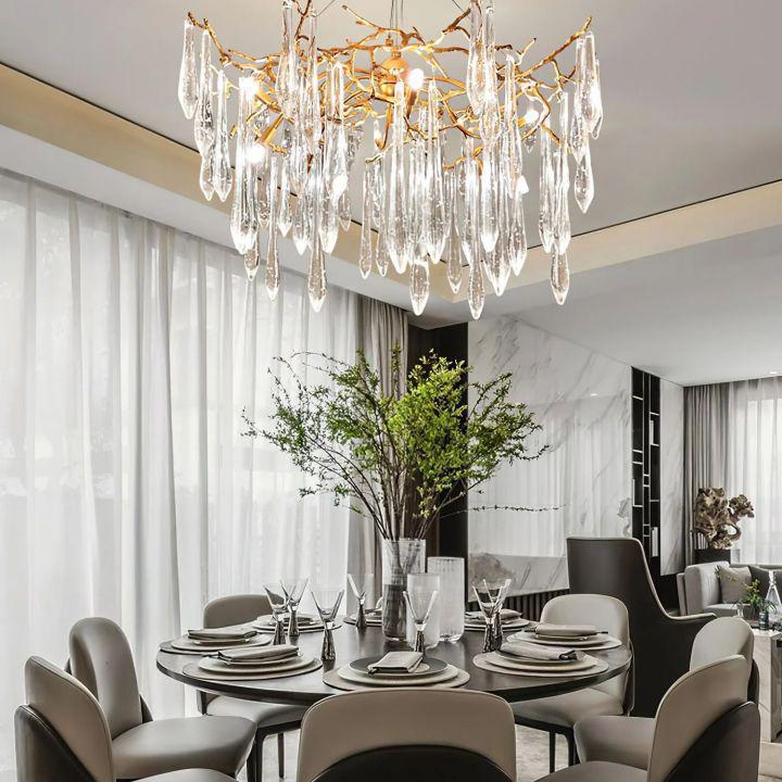 Bring elements of nature into your space with this beautiful icicle crystal pendant lamp With stunning crystal draping from a ring of golden branches, each elegant hanging light adds a hint of freshens and elegance to your home or office |
