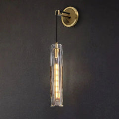 The Katina Crystal Wall Sconce is machined from solid brass. All parts are hand polished and patina’d. The lead crystal shade is hand carved and polished.
