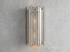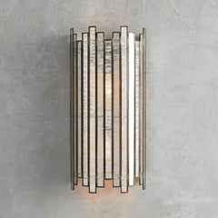 - Crafted from iron and brass with an Antique Copper finish with antiqued mirrored-glass panes surrounding the frame.
