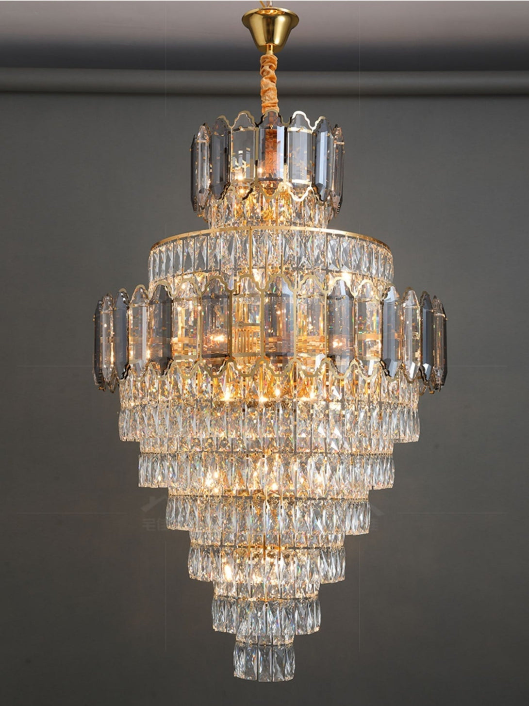 Large Staircase Crystal Chandelier Living Room Ceiling Light Fixture For Hotel Entrance In Gold Finish
