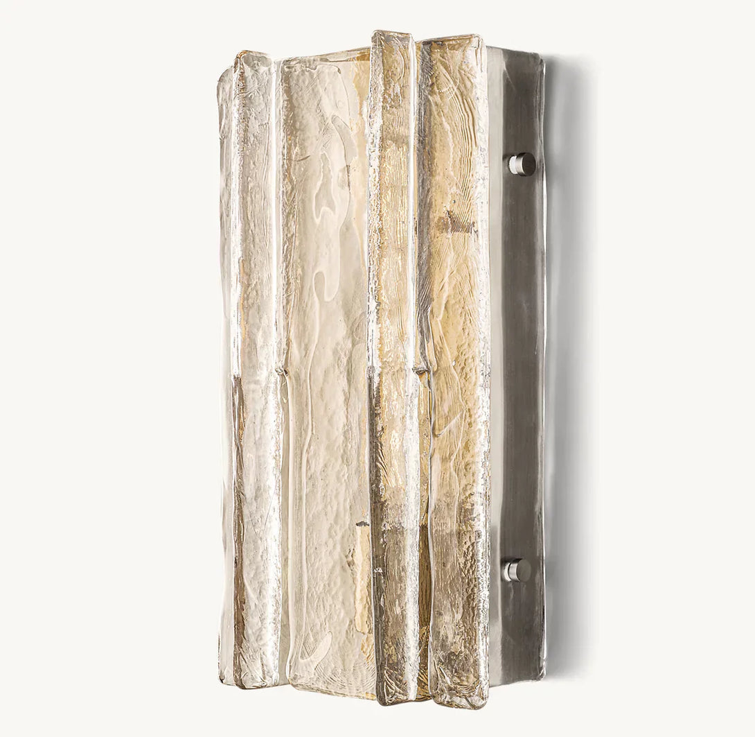 - Glass is cast in a custom mold to create its distinctive rippled texture