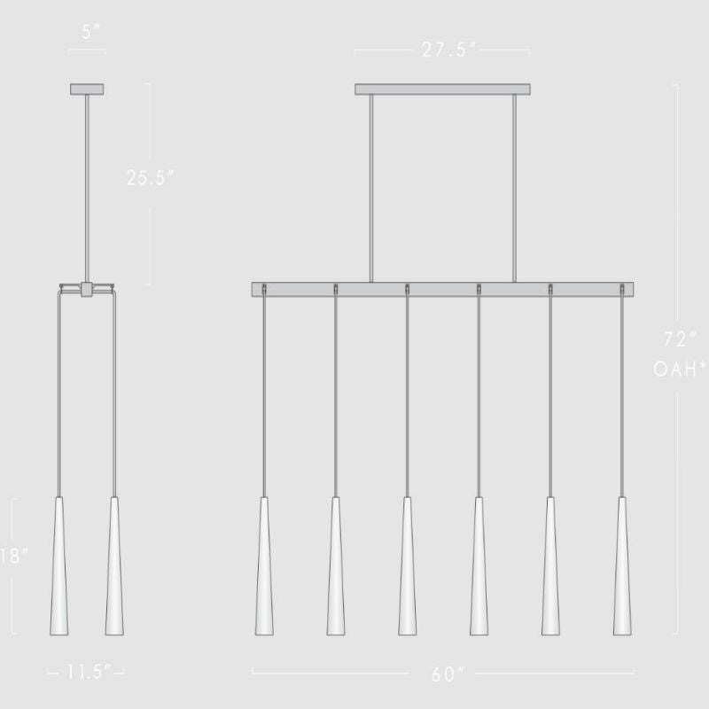 - Overall: 60" W x 11.5" D x 72" OAH*