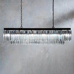 - French Art Deco style of the 1920s is reborn in our glamorous Leyland Lighting Collection, featuring layered row upon row of faceted glass crystals from a rustic iron frame.