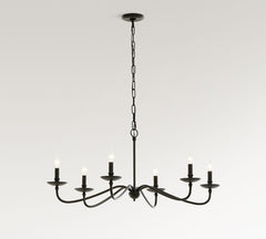 - Accommodates six 40W type B Candelabra bulbs or LED equivalent. Base Type: E12.