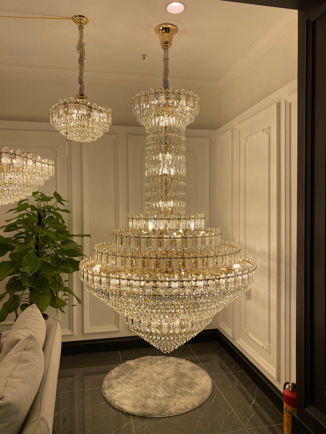 Luxury Extra Large Multi-tiered Funnel Clear Crystal Chandelier for Staircase/Foyer/Living Room