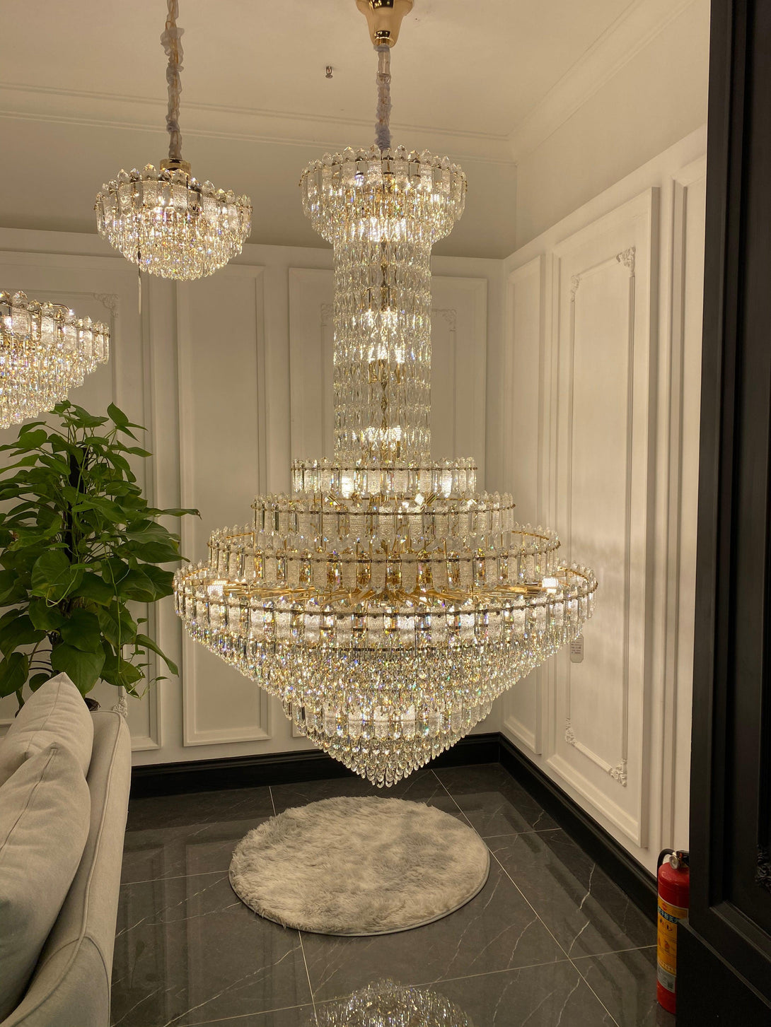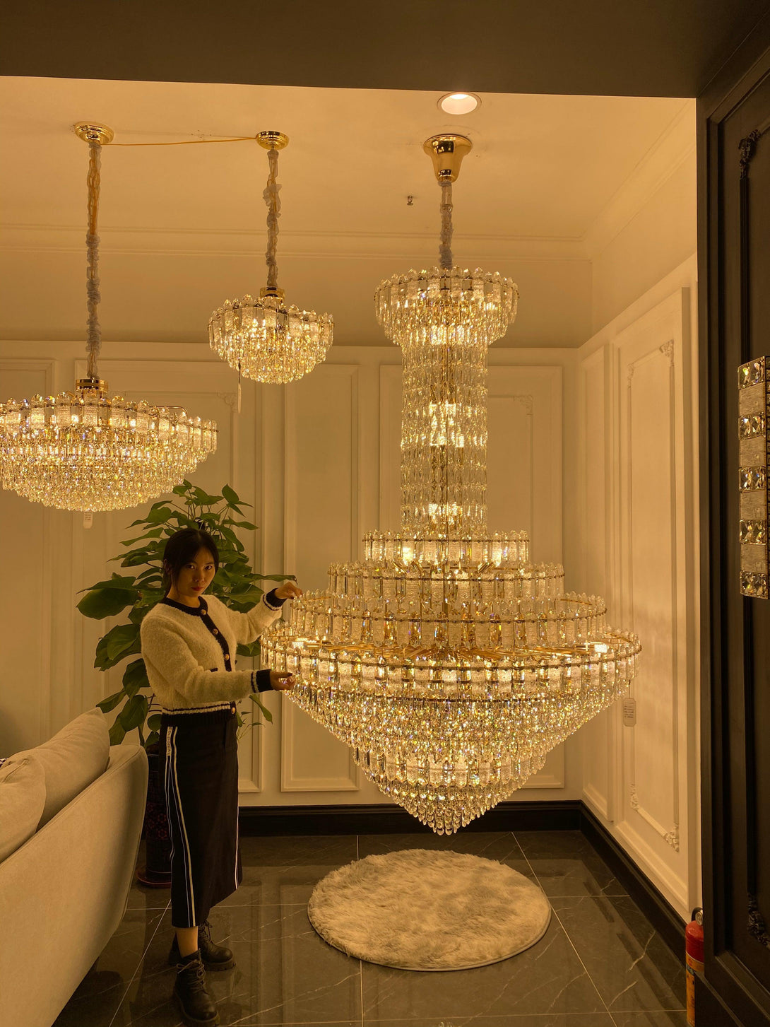 Expertly crafted for grand spaces, the Luxury Extra Large Multi-tiered Crystal Chandelier is the epitome of opulence and sophistication. Its delicate crystal tiers and cascading design will instantly elevate any staircase, foyer, or living room. Perfect for adding a touch of luxury to your home's décor.