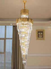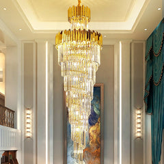 Luxury Gold Trimmed Long Crystal Chandelier Foyer Staircase Extra Large Ceiling Light Fixture