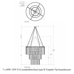 - 7 x 60W 120V E12 (candelabra base) type B Torpedo Tip Incandescent lamp (not included)