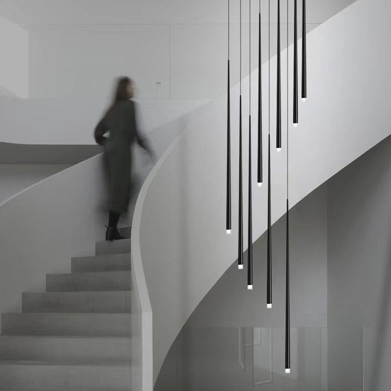 Minimalist Modern Conical Long Chandelier for Dining Living Room Ceiling Duplex Spiral Staircase