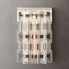 This collection of lamps, pure and minimalist in style, features stunning, interlocking open and closed chains designed with crystalline crystals. The stylized chains are suspended without wires, creating an elegant cascade of shimmering light.