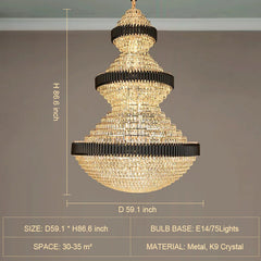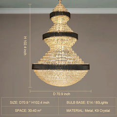 Modern Black Iron Crystal Chandelier For Foyer Staircase Luxurious Design Ceiling Light Fixture