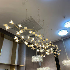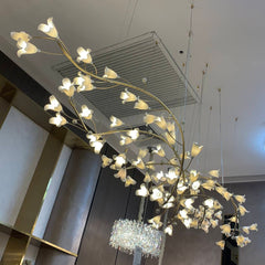 Modern Brass Branch Ceramics Flower Chandelier for Stylish Living Room Hotel and Restaurant