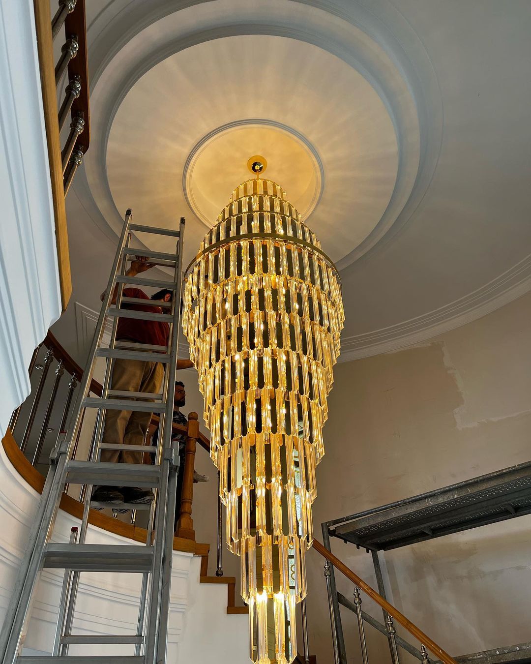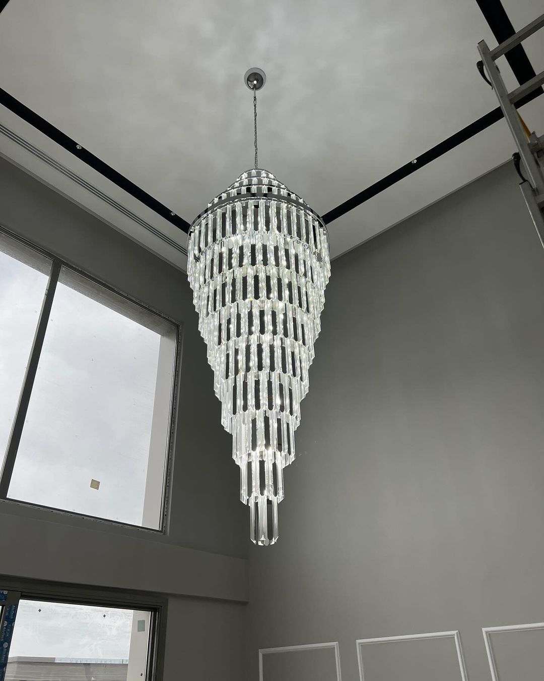 Extra Large Modern Pyramid-shape Crystal Chandelier for High-ceiling