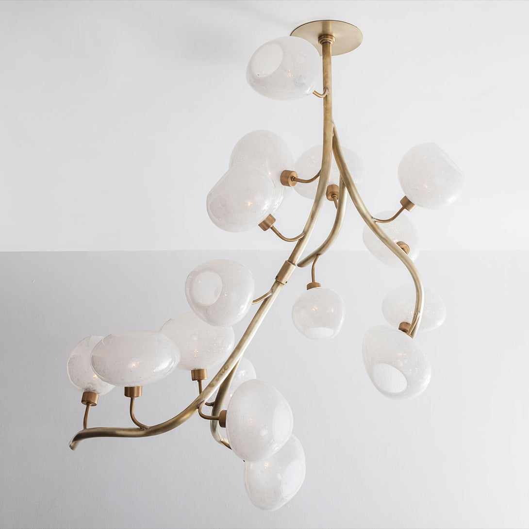 Modern Chandelier with Irregular Glass Lampshades and Brass Branches
