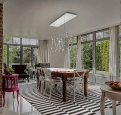 Modern light luxury creative lines long chandelier is not your favorite type? This modern chandelier uses a variety of colors of the line tube grouped together, with a round or rectangular chassis, forming a simple and textured lamps, this lamp can not only develop their own size of the plate, but also you can specify the color you want to combine together to form their own unique style, we provide the body of the lamp colors: chrome, gold, black, rose, brown, white. This lamp is also particularly suitable for decorating the hotel lobby or coffee shop, bar, restaurant, etc., look up is a sense of art lamps, will make your guests surprised!