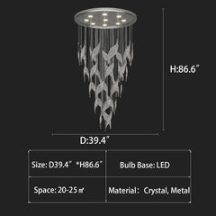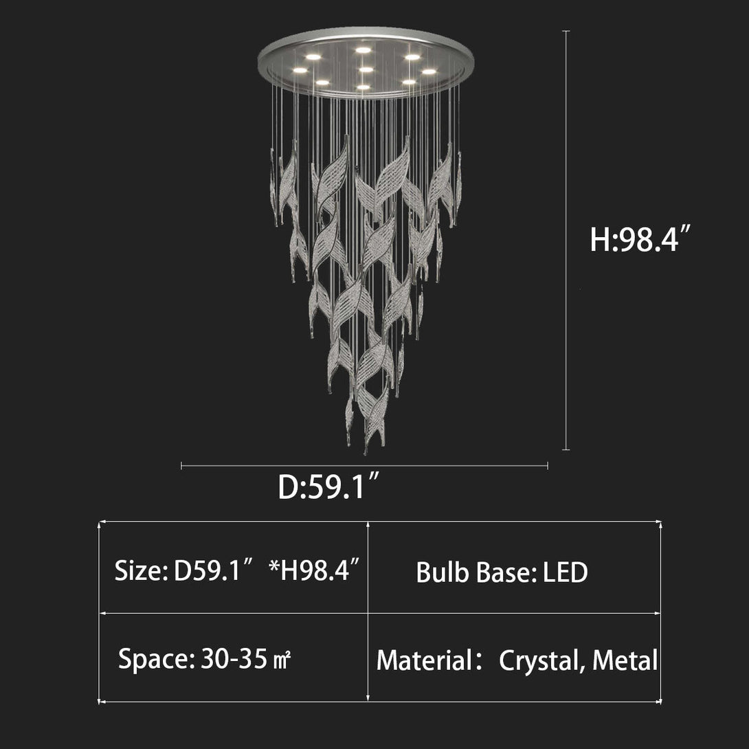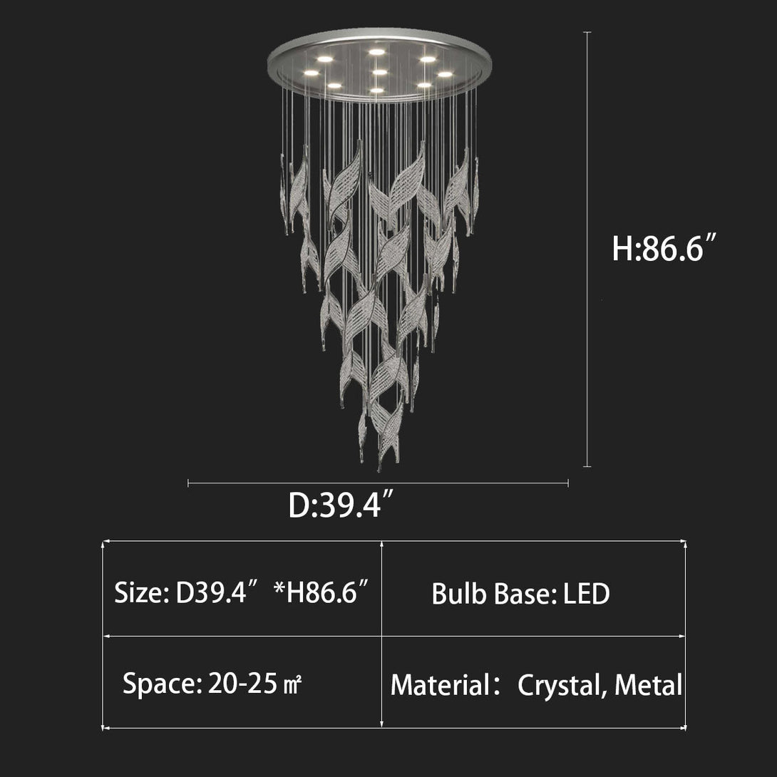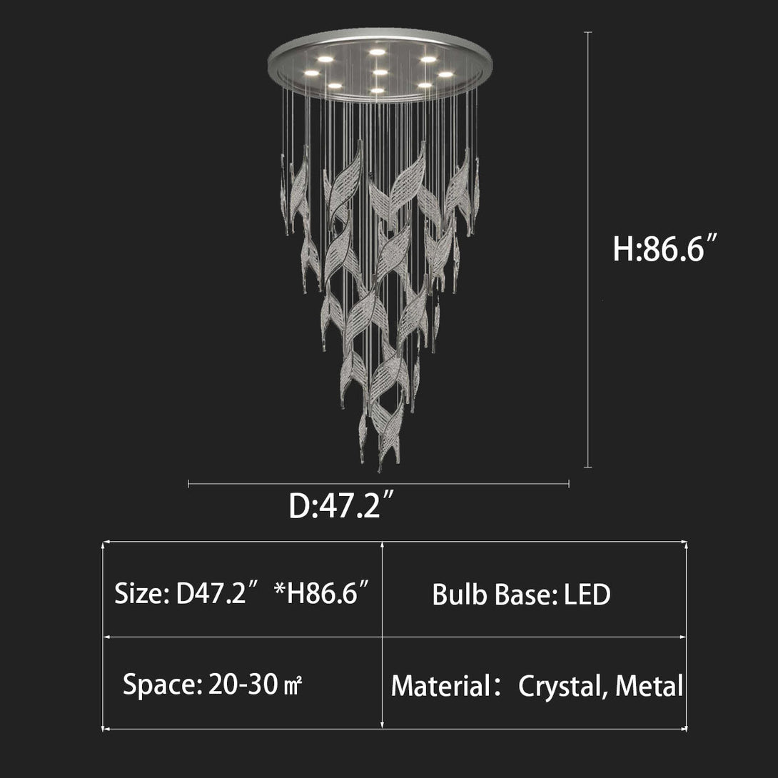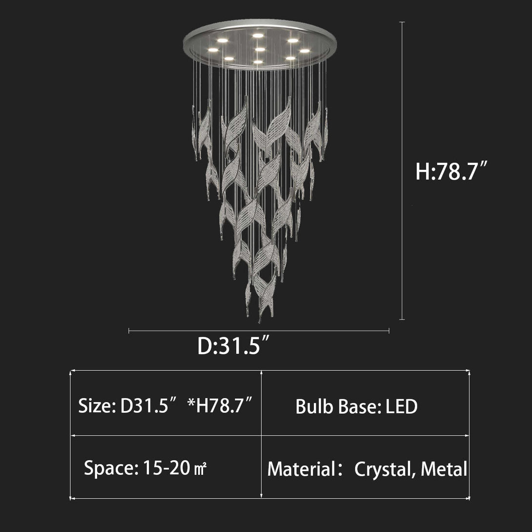 Modern Light Luxury Multi-layered Openwork Leaf Crystal Chandelier for Living Room/ Staircase/Duplex