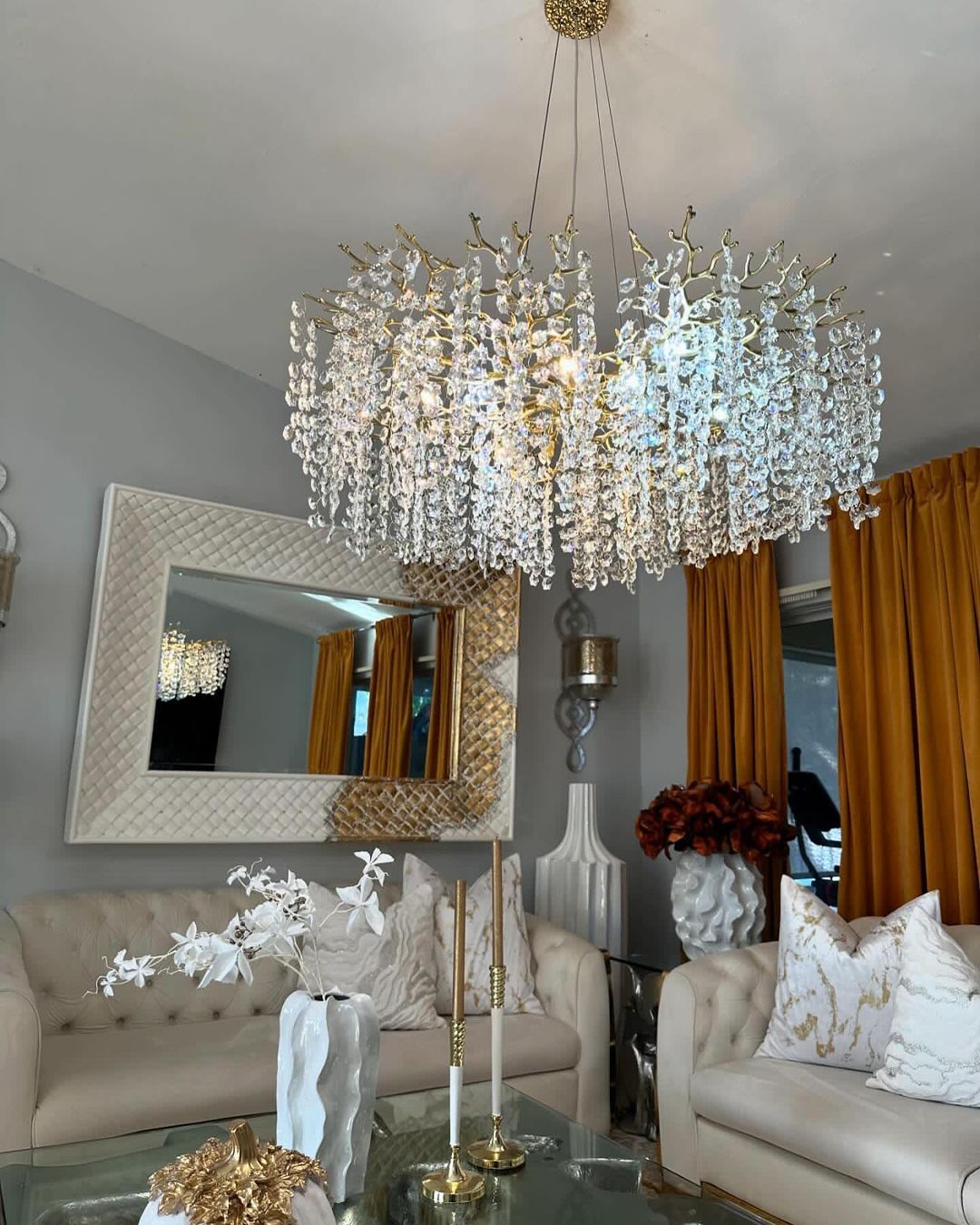 Modern Round/Rectangular Floral Crystal Chandelier for Low-ceiling