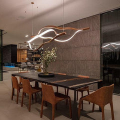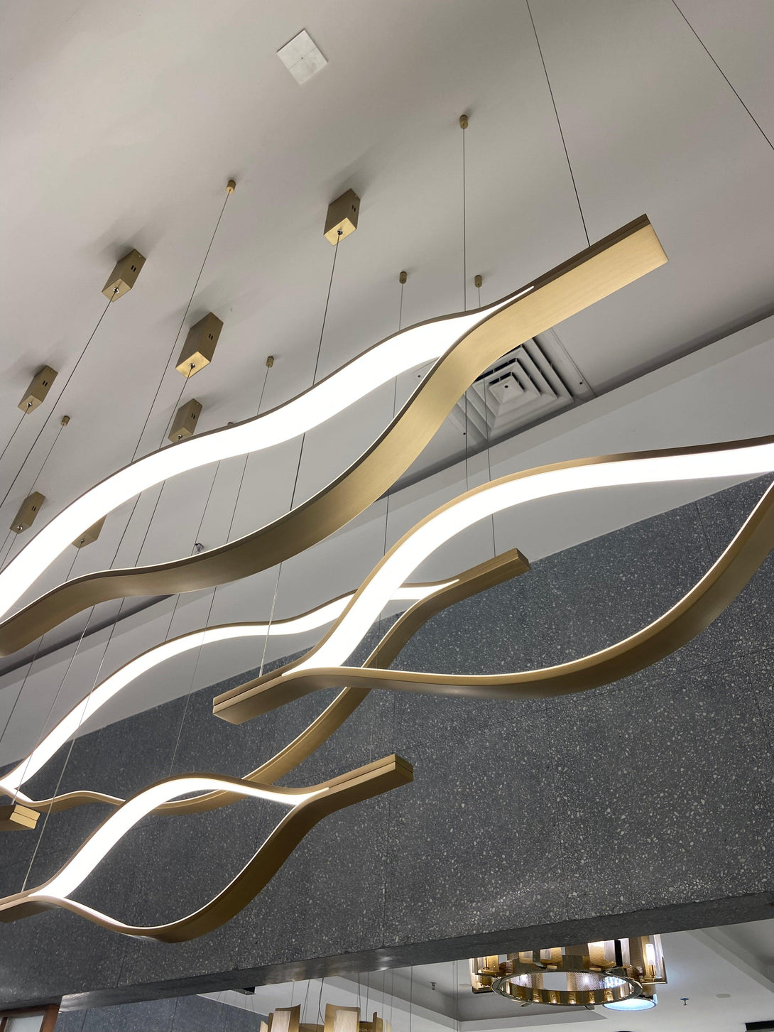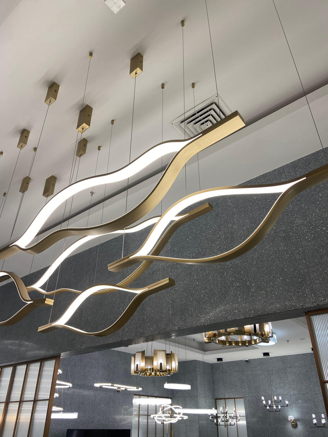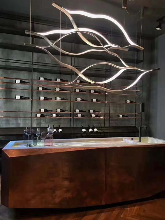 Add a touch of class and elegance to any room with the Modern Simple Aluminum Waving Chandelier. Made of sleek metal with a modern design, this LED light fixture is controlled by a remote for customizable dimming options. Perfect for living rooms and other spaces in your home.