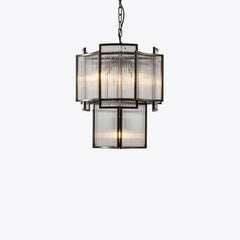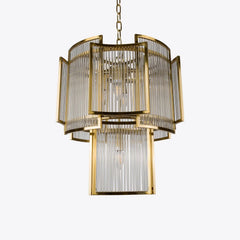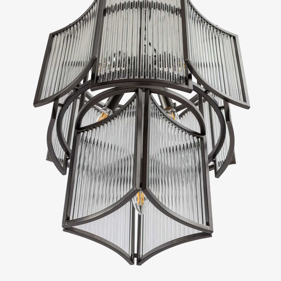 The Piccolo Monte Carlo chandelier features three elegant tiers of bronze finished metalwork and brass finished metalwork, enclosing clear glass rods to create a beautiful cascade effect. The perfect addition to a living or dining room.