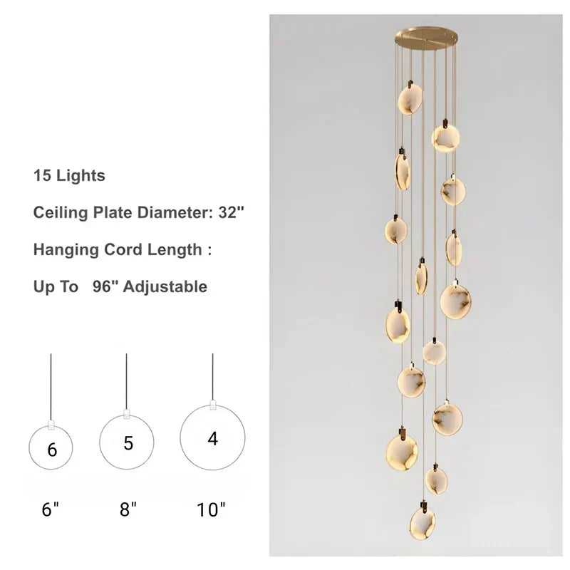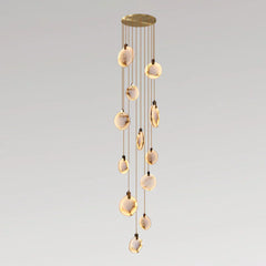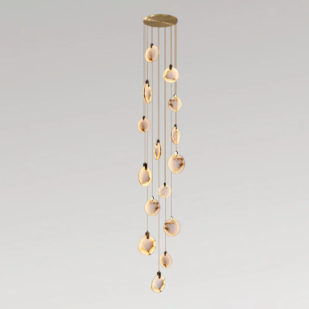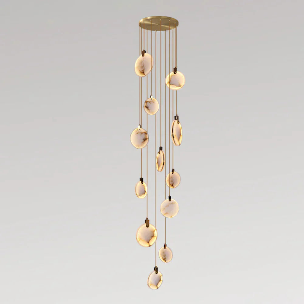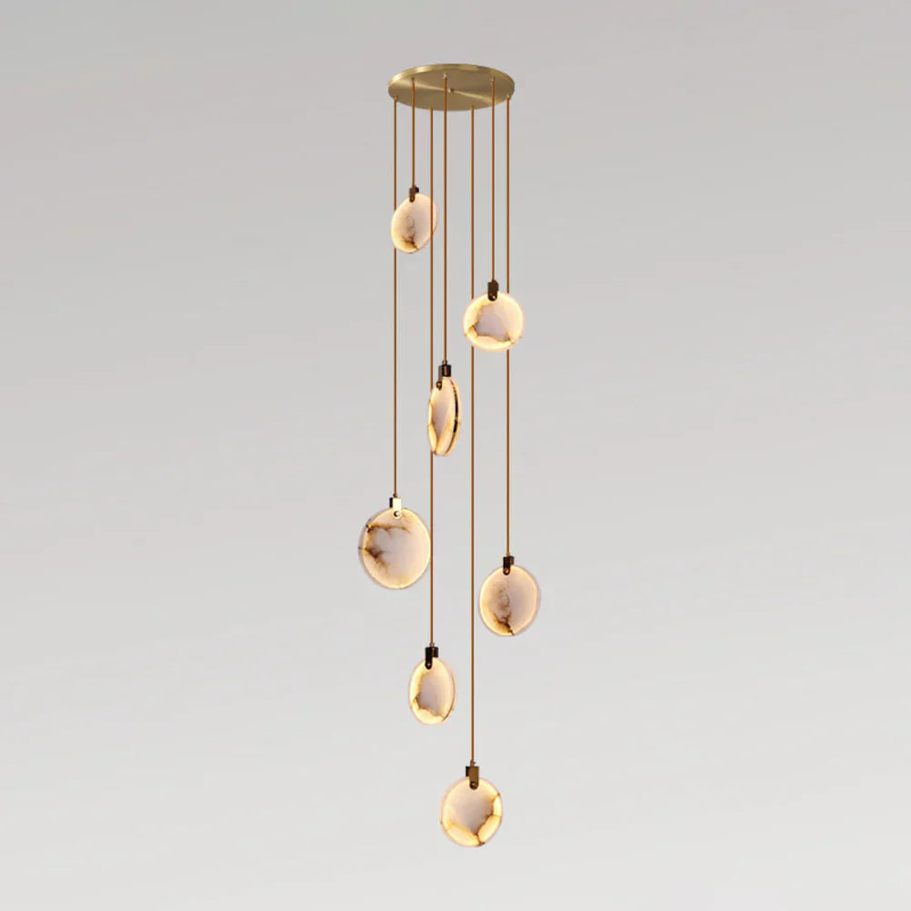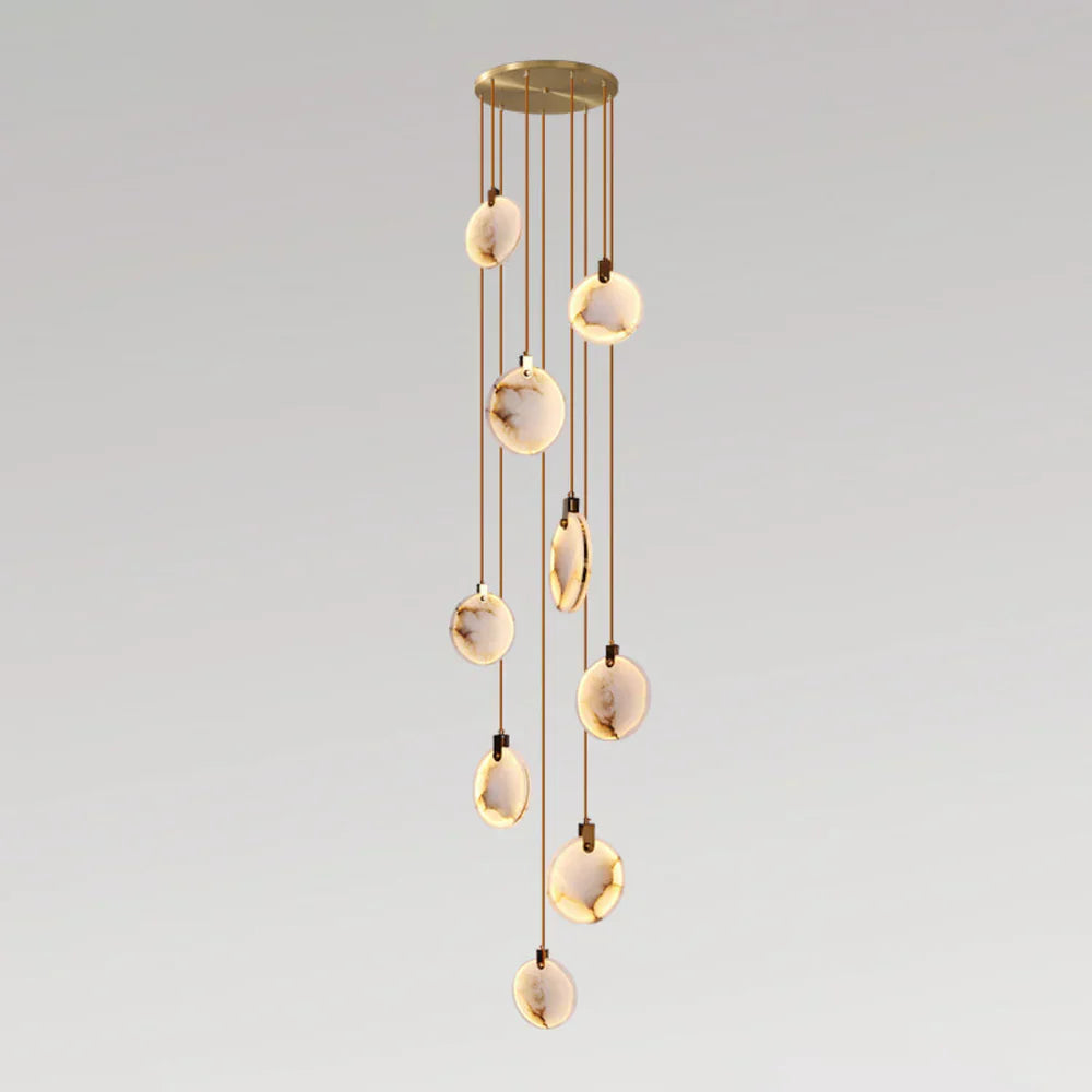 Immerse yourself in the exquisite allure of our one-of-a-kind chandelier, crafted from genuine Spanish marble and polished brass. The Moonshade chandelier can elevate any space, leaving a lasting impression with its luxurious appeal. A perfect addition to a modern interior, its minimalist design conceals impeccable craftsmanship. Our hand-selected, all-natural marble from Spain showcases stunning patterns such as snow, ink, flame, and ice cracks, ensuring each pendant is truly unique in texture.