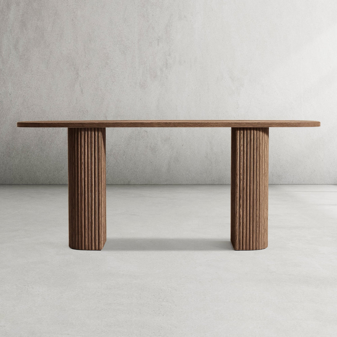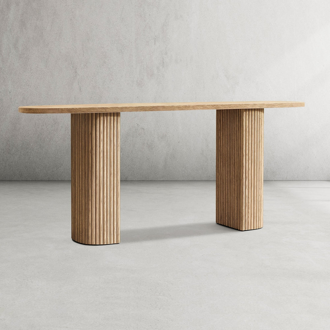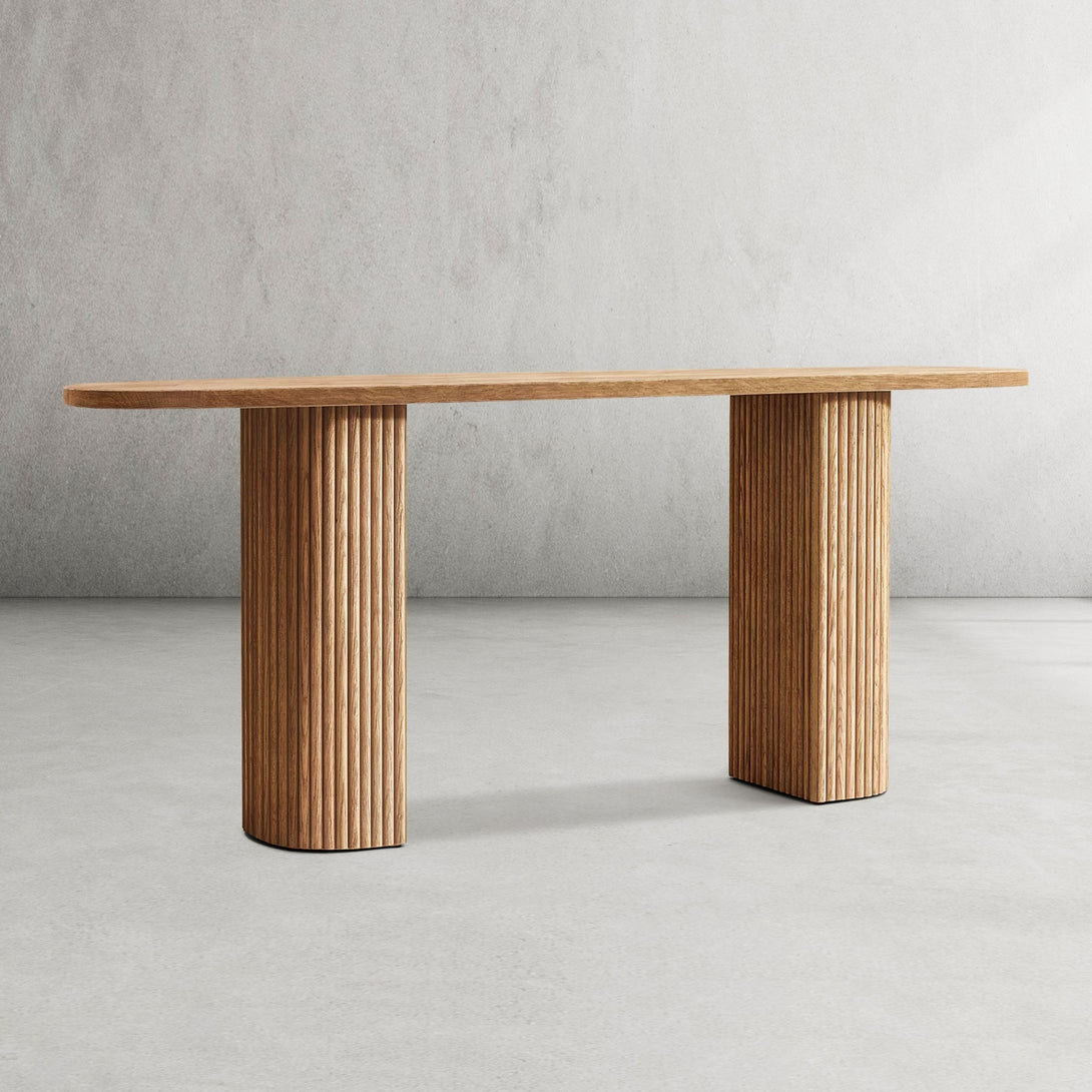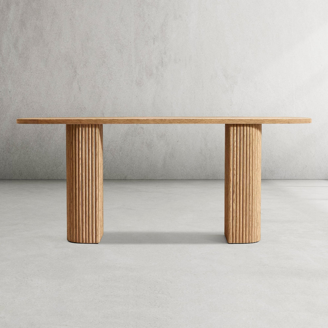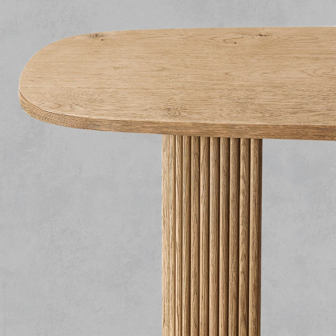 Construction & Materials | - Crafted from kiln-dried solid wood and engineered wood with American oak veneers for durability and a high-quality finish. - Vertical surfaces feature solid oak reeding, adding a tactile element. - A multistep finishing process creates a matte surface that enhances the wood's natural grain, adding depth and character. |