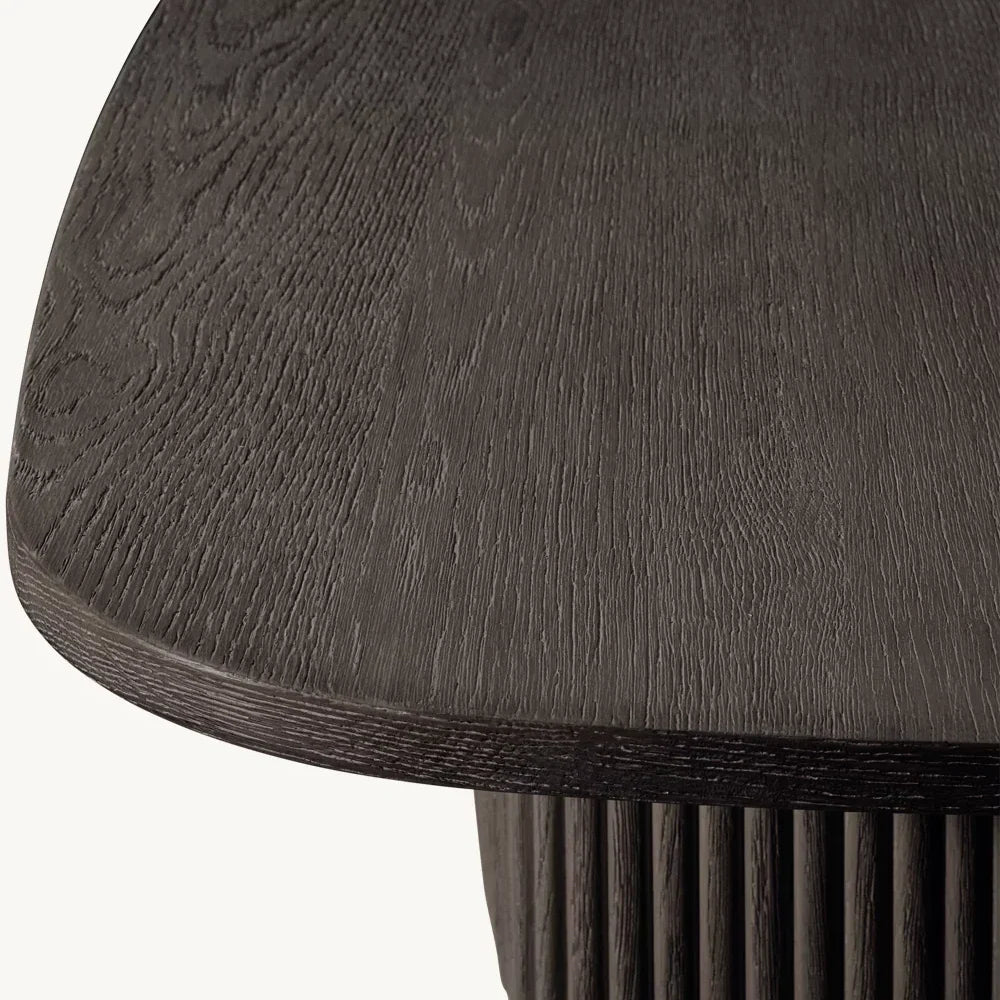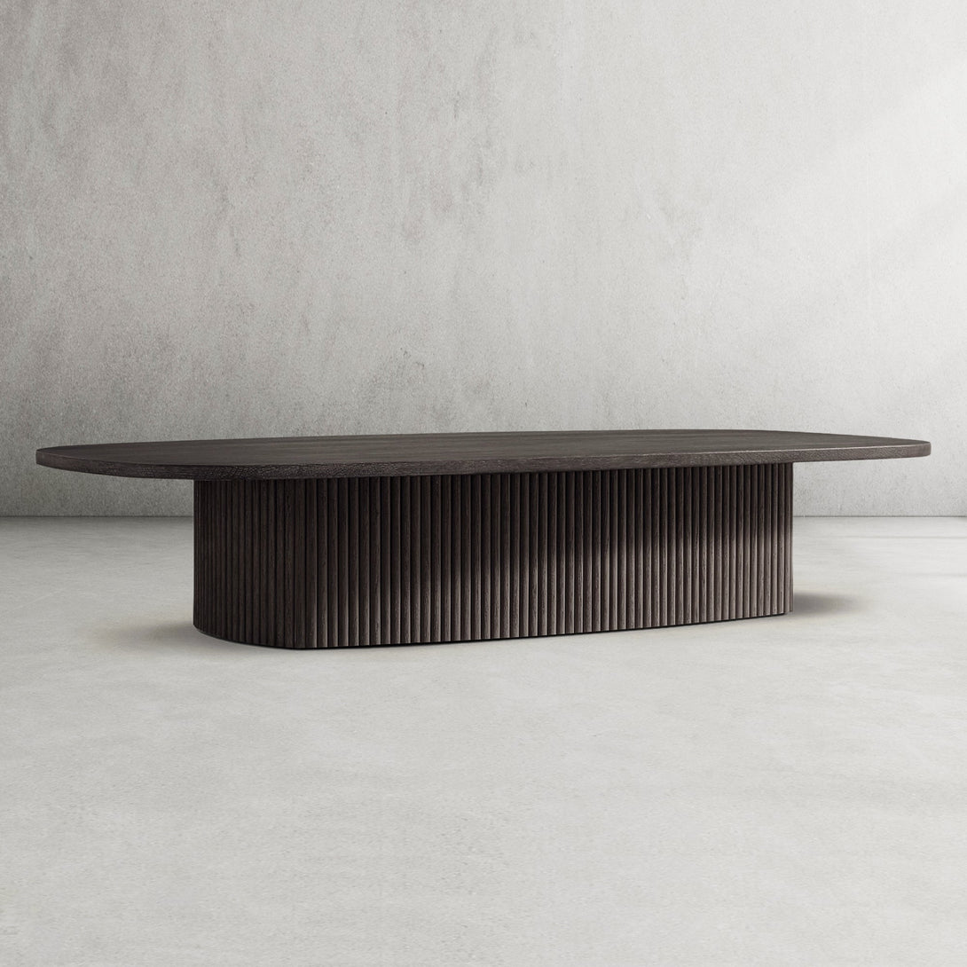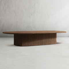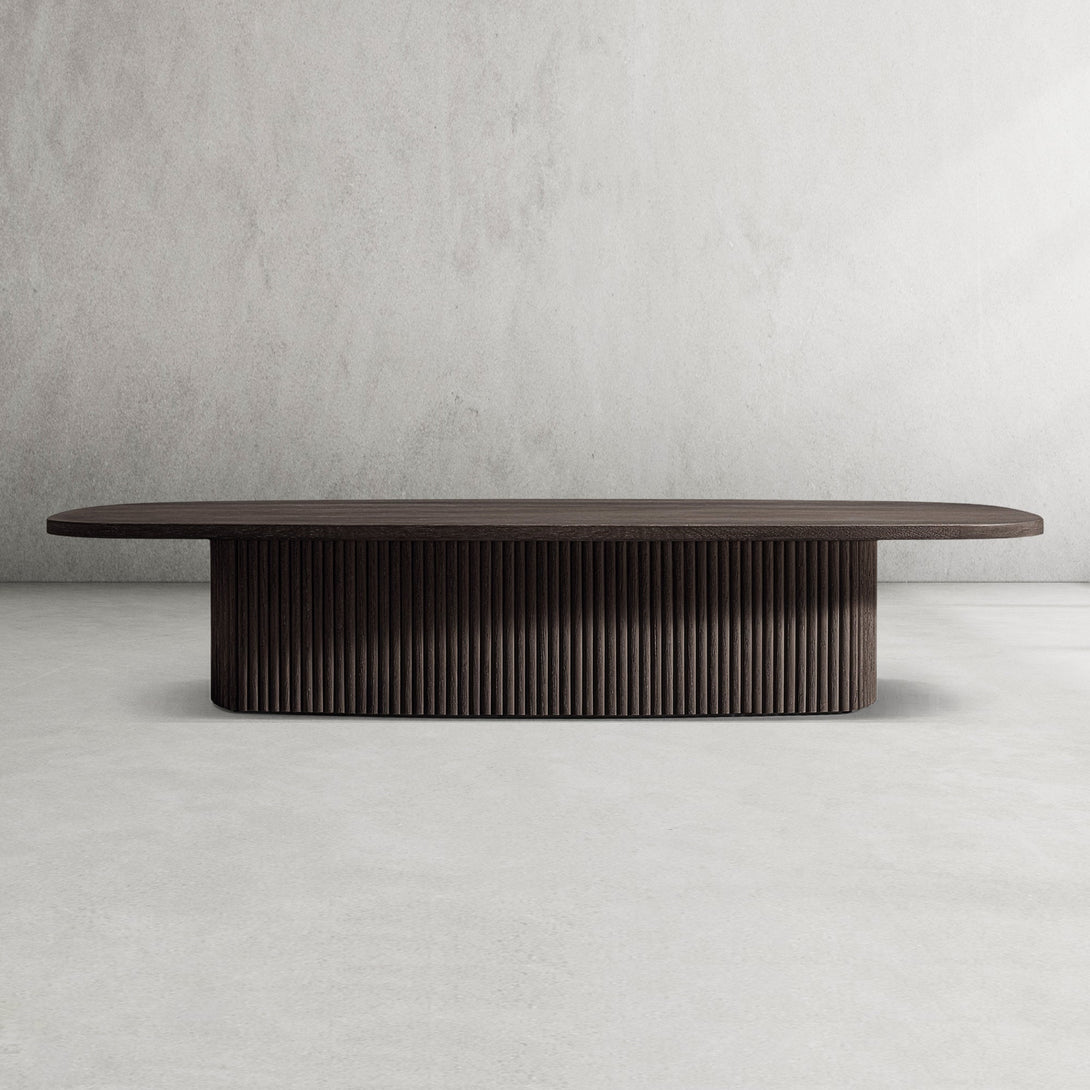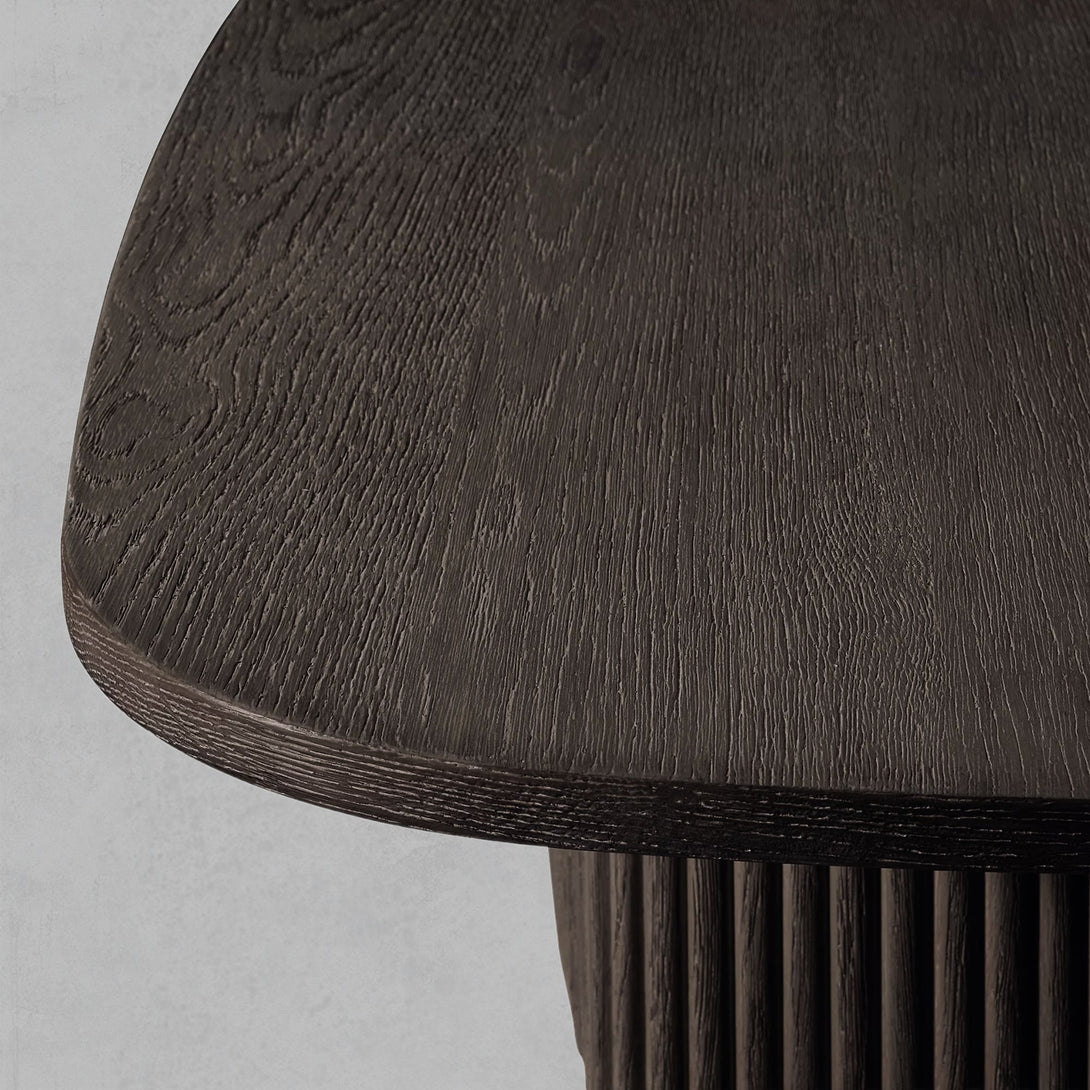Construction & Materials | - The table is meticulously crafted from kiln-dried solid wood and engineered wood, adorned with American oak veneers, ensuring durability and a high-quality finish. - The vertical surfaces showcase solid oak reeding, adding a distinct, tactile element to the piece. - An intensive multistep finishing process gives the table a matte surface that highlights the natural grain of the wood, adding character and depth. |