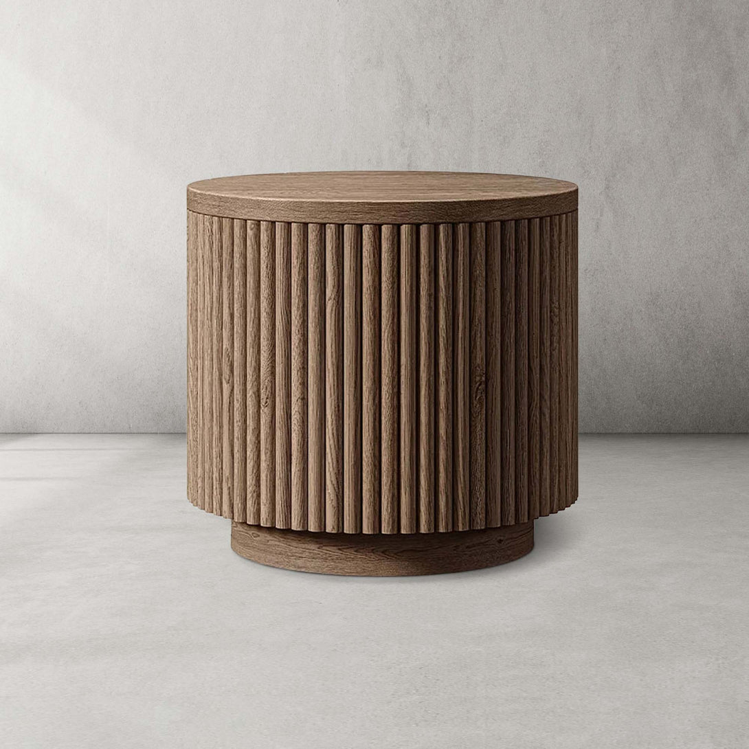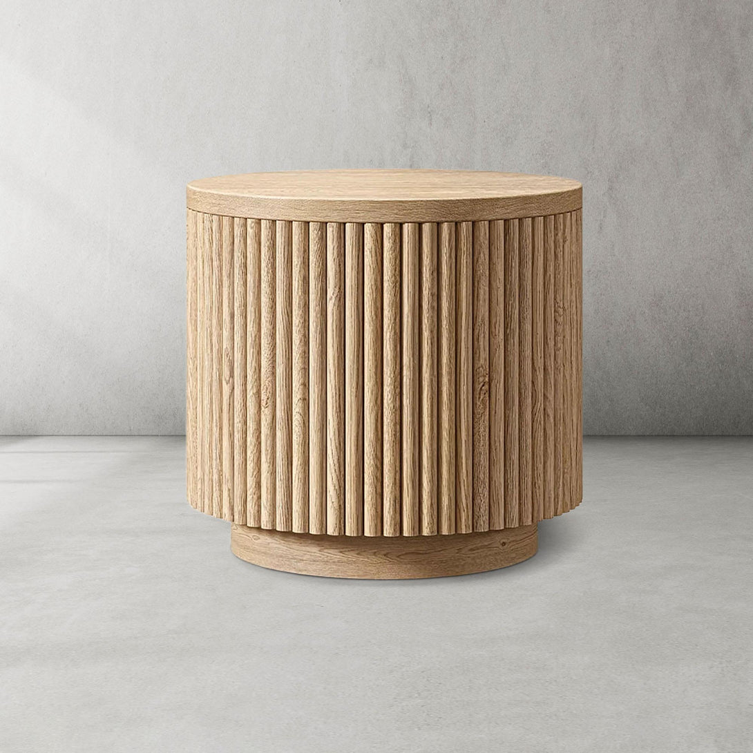Construction & Materials | - Meticulously crafted from kiln-dried solid wood and engineered wood, adorned with American oak veneers, ensuring durability and a high-quality finish. - Vertical surfaces feature solid oak reeding, adding a distinct, tactile element to the piece. - Intensive multistep finishing process results in a matte surface that highlights the natural grain of the wood, adding character and depth. |