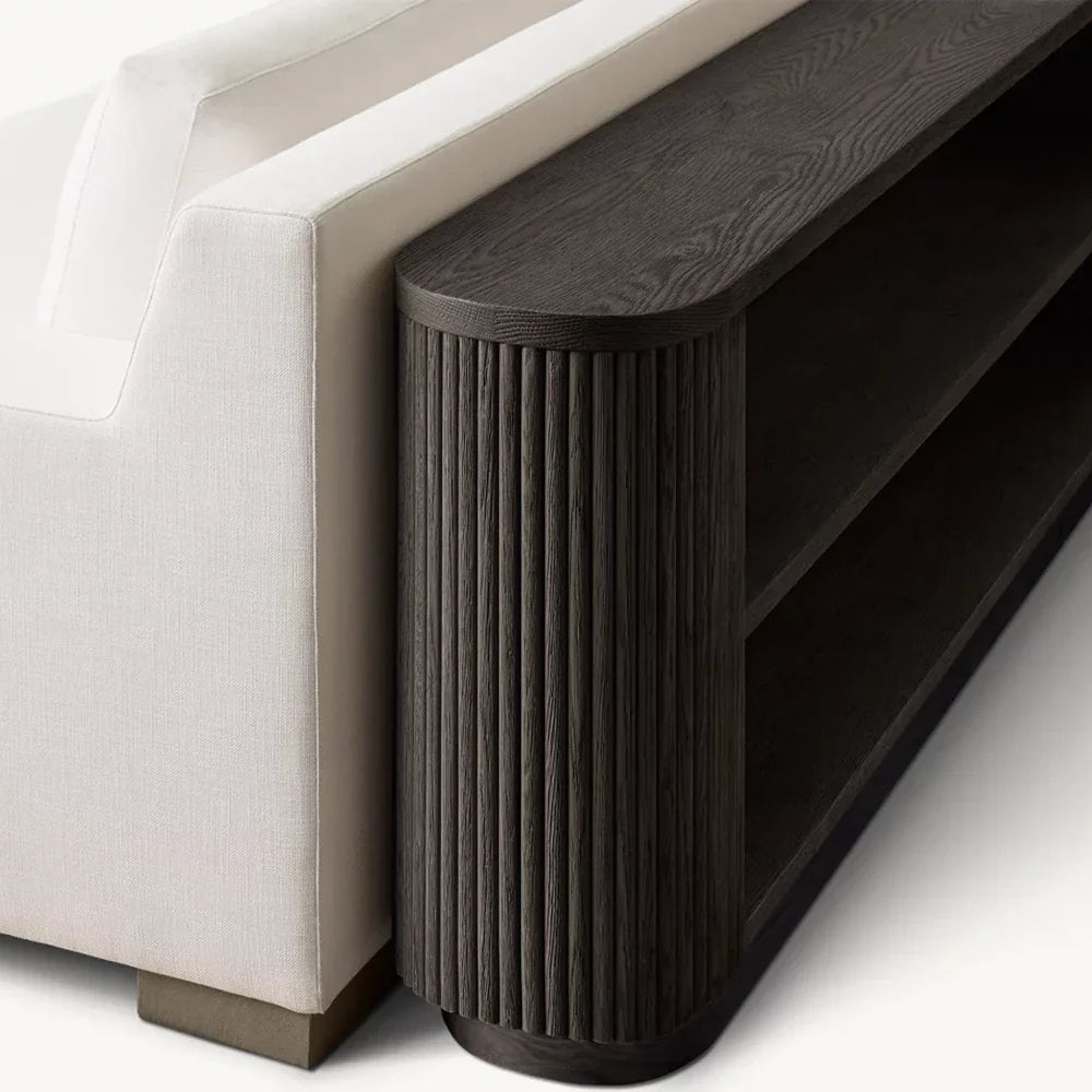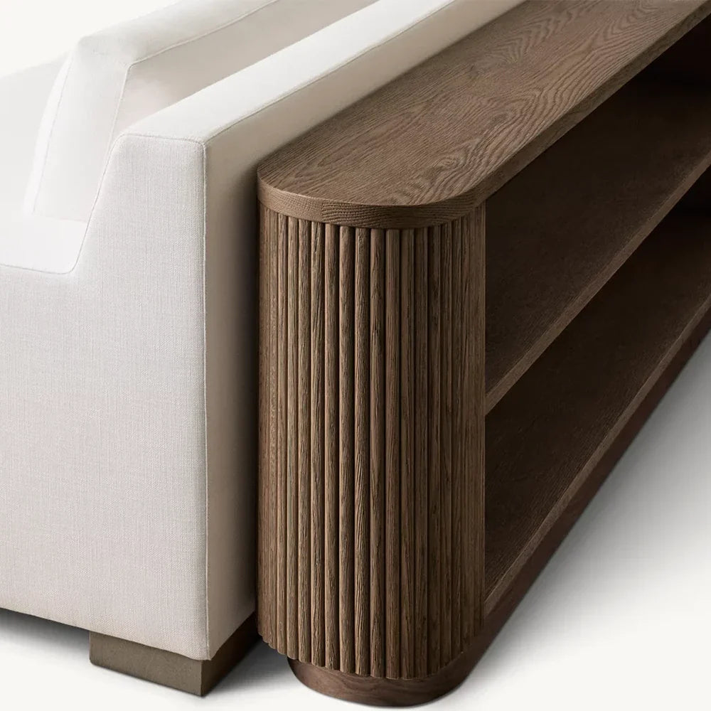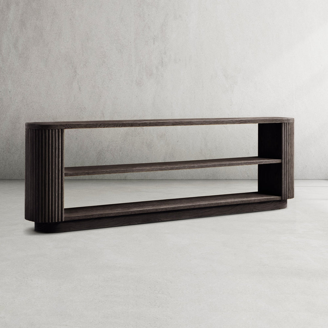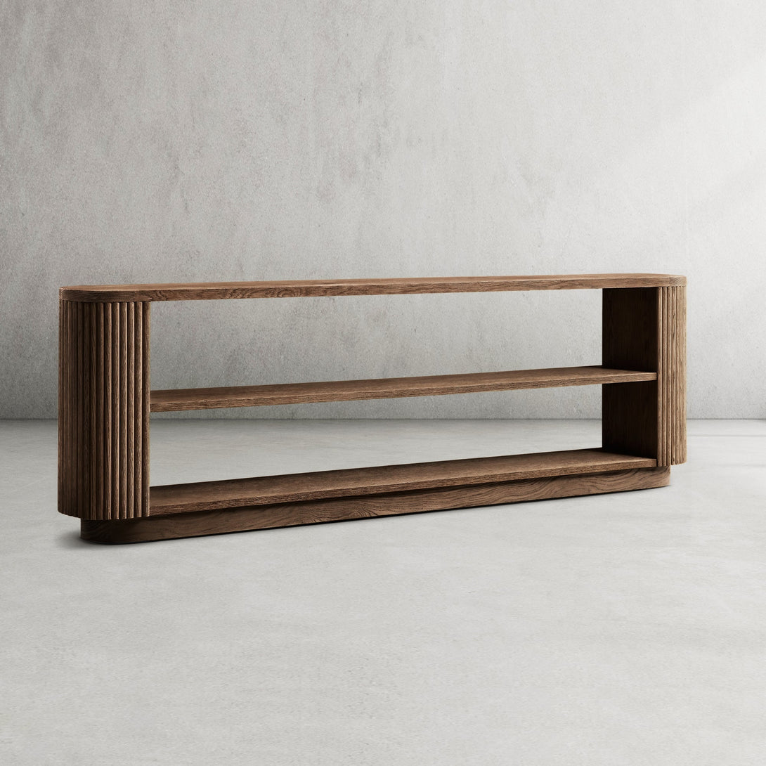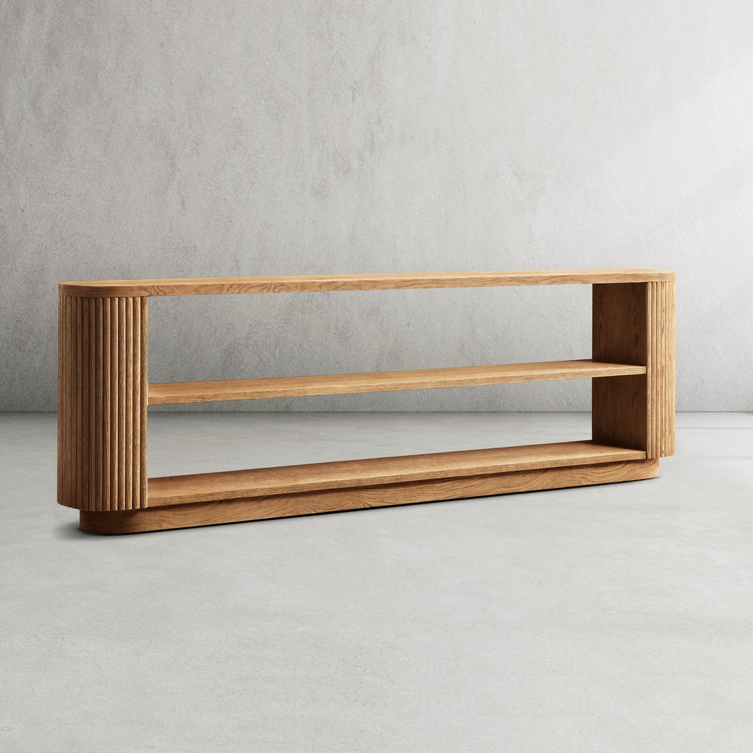 Construction & Materials | - The table is meticulously crafted from kiln-dried solid wood and engineered wood, adorned with American oak veneers, ensuring durability and a high-quality finish. - The vertical surfaces showcase solid oak reeding, adding a distinct, tactile element to the piece. - An intensive multistep finishing process gives the table a matte surface that highlights the natural grain of the wood, adding character and depth. |