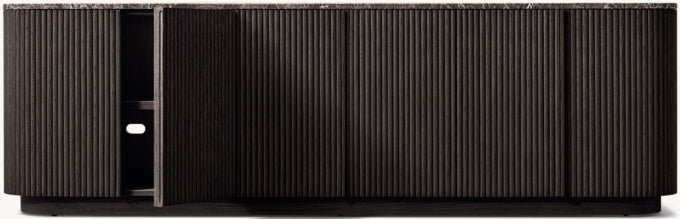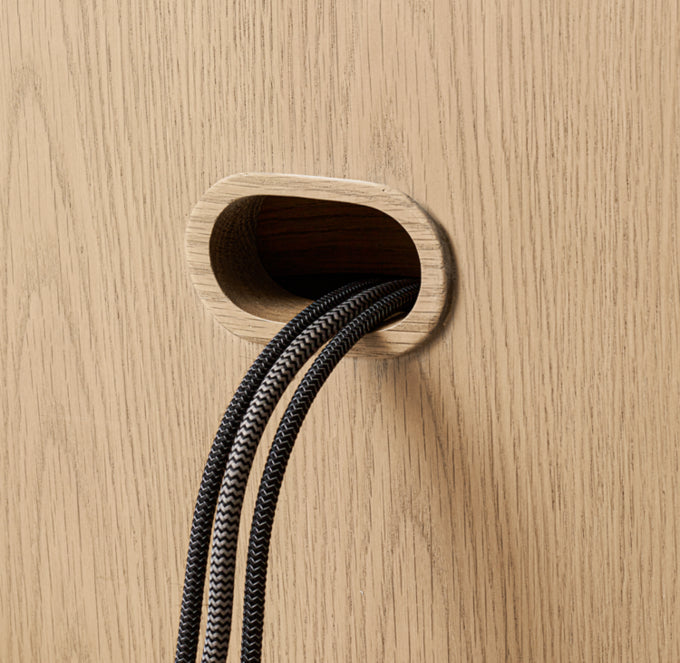 - 3 cord cutouts in back panel for wire management (1 per section); cord cutouts have wood grommets in a complementary finish