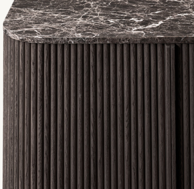 - Top crafted of ¾"-thick Spanish or Turkish marble over an aluminum honeycomb core