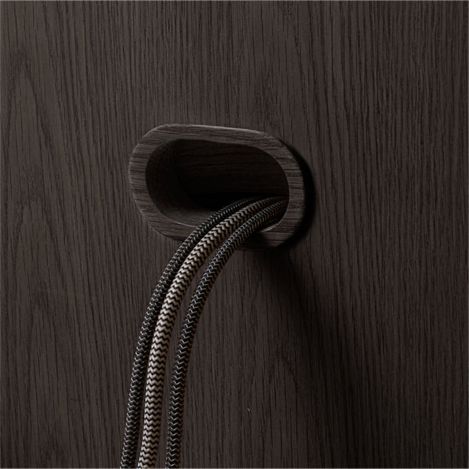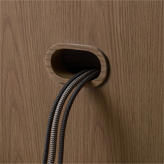 - Cord cutout in back panel for wire management; cord cutout has a wood grommet in a complementary finish