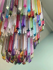 Expertly crafted in the renowned Murano glass-making tradition, this chandelier boasts 184 intricate prisms in a vibrant multi-color design. Elevate any space with a touch of Italian elegance and dazzling light refraction. Perfect for adding a unique and luxurious touch to your home or business.