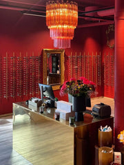 Enhance the elegance of any space with our Murano Chandelier featuring 184 beautifully crafted prisms in a stunning pink hue. Perfect for creating a luxurious ambiance, this exquisite chandelier is a statement piece that will elevate your decor with its intricate design and expert craftsmanship.