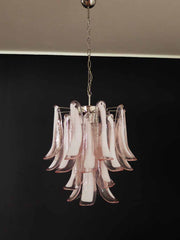 Treat your home to sublime elegance with our stunning Italian Murano chandelier in Mazzega style. This impressive chandelier is adorned with 26 large and impressive pink/white petals that create an enchanting and inviting light.
