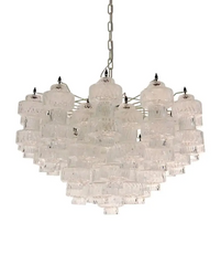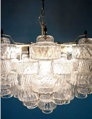 This Murano Chandelier boasts 37 transparent glasses, creating a stunning and elegant statement piece for any room. Handcrafted in Murano, Italy, each glass holds its own unique beauty and shine. Elevate your space with this expertly crafted and timeless chandelier.