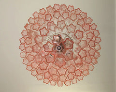 Expertly crafted in the famed Murano glass-making traditions, this chandelier boasts 78 delicate pink tubes for a stunning and unique lighting experience. Elevate any space with its elegant design and warm ambiance.