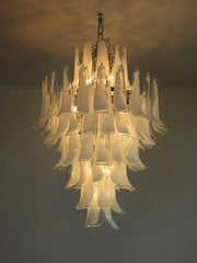 Expertly crafted in Murano, Italy, this sleek chandelier boasts 85 petals in a stunning white and transparent color. The intricate design and high-quality materials guarantee an elegant addition to any space. Elevate your home decor with this luxurious and timeless piece.