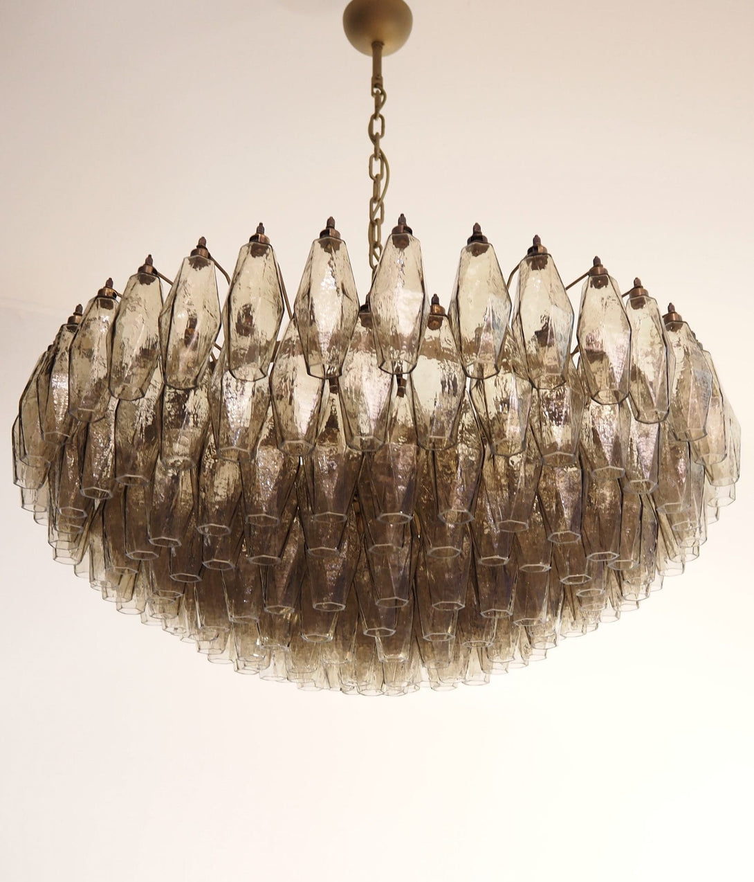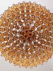 Enter a world of enchanting light and aesthetic elegance with our stunning Murano Poliedri Chandelier. This chandelier is adorned with a whopping 185 beautiful amber glas prisms carefully created by skilled italian glassblowers. It creates a seductive atmosphere and adds an aura of refined beauty to your space.
