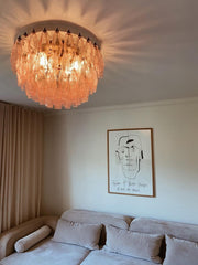 Renew your home with a touch of Italian elegance with our Murano-style ceiling light. A true masterpiece of glass craftsmanship, this lamp is made up of 84 beautiful pink Murano Poliedri glass. With smoky glasses, it adds a vibrant and dynamic atmosphere to any room.