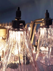 With its gold and brass-colored metal structure, this chandelier exudes a timeless charm and sophistication that will enchant any room. The rose-colored glass provides a stunningly delicate light that spreads a magical glow and creates a welcoming atmosphere.