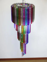 Elevate any space with the Murano spiral chandelier, featuring 86 prisms for a stunning display of light. Made from authentic Murano glass, this chandelier is a true work of art that adds a touch of elegance. The multi-color design adds a unique touch to any room.