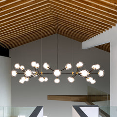 Heliovaro Flat Chandelier Metal & Brass & Borosilicate Glass 80.7"W x 40.6"D