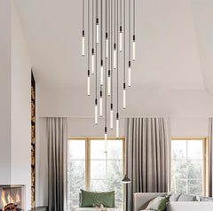 Nordic Fashion Minimalist Black Straight Pendant Chandelier for Bedside/Staircase/Loft/Duplex