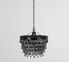- Crafted of iron in a Black finish with tinted crystal droplets.