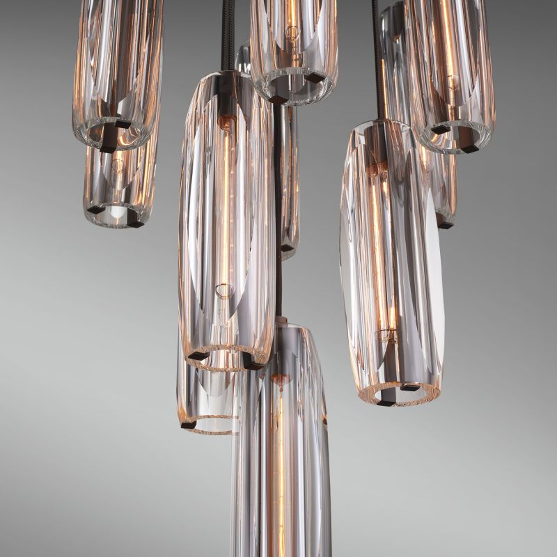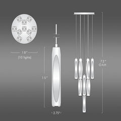 The Osleride 10 Light Circular Chandelier is made up of ten lead crystal Pendants. The ceiling plate and socket covers are made by hand. All parts are hand polished and patina’d.Dimensions:
