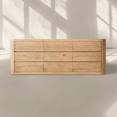 The Oslo collection showcases the beauty of handcrafted precision. Artisans wire-brush each piece by hand after a high-heat treatment that accentuates the oak’s rich texture and distinctive cracking. This meticulous process ensures that each item bears unique characteristics and bespoke charm.