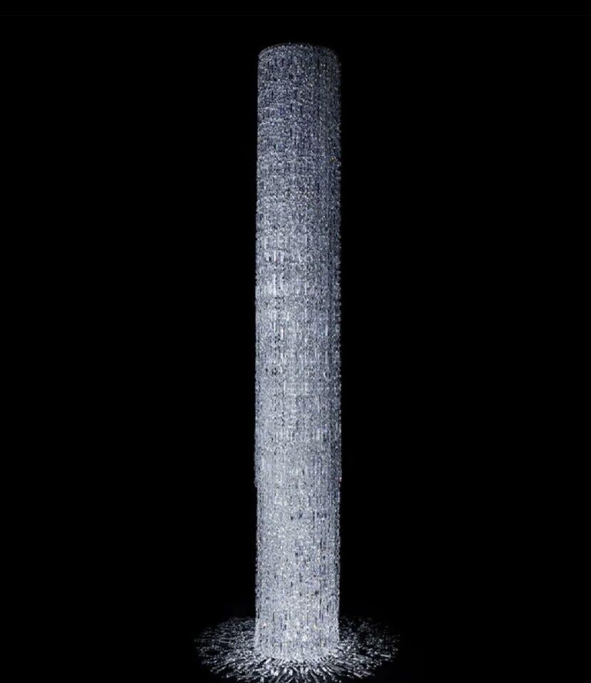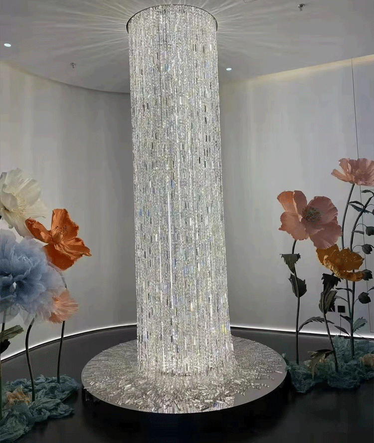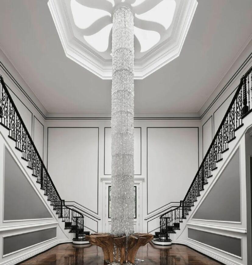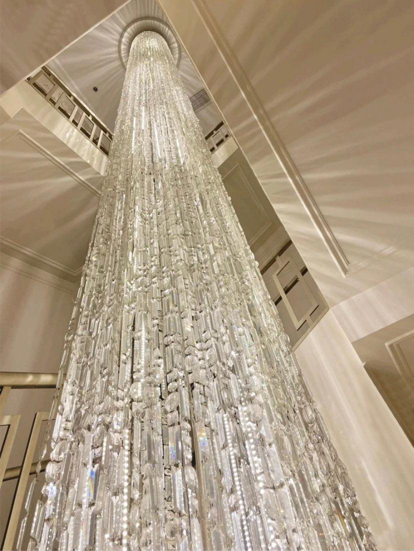 Oversized Silver Crystal Long Ceiling Chandelier Art Designer Column Waterfall Decorative Staircase Light Fixture